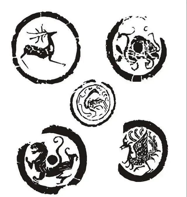 秦瓦当纹饰取材广泛,山峰之气、禽鸟鹿獾、鱼龟草虫皆有,图案写实,简明生动。这时的瓦当纹饰以动物形象居多,有鹿、四神、鸿雁、鱼及变化的云纹。画面与写意相融,图案构思巧妙,有将画面一分为二、也有一分为四的,在对称中求变化,均衡自然,富于生气。