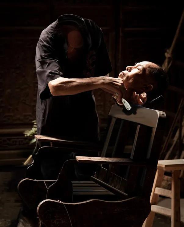 却见有一个身穿白色长袍的人正站在桌前,手里不知在干着什么。再仔细一看,那人脖子上竟空无一物,桌上却放着一颗人头,而那人手里拿着梳子正在给人头梳理头发。