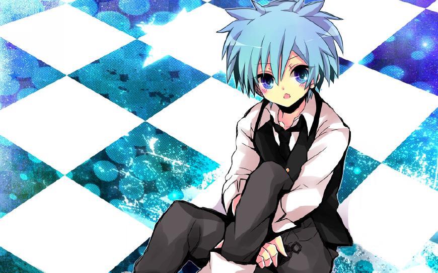 这个知道的人应该比较多,《暗杀教室》的男主角。原来是单马尾后被茅野枫改成了和她一样的发型(浅蓝的双马尾似的发型),体格比其他同学小,很像女孩子,甚至比同班的一些女生还要可爱。
