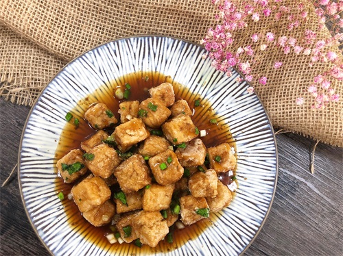 鉴于典发食品 “千页”豆腐具有Q弹爽滑,久煮不烂,好吃入味的特性,一卤二炸三入盘,成就了这道金卤咸酥“千页”豆腐,不管是餐桌上的一道下酒菜,还是美食街口的风味小吃,都是极好的。