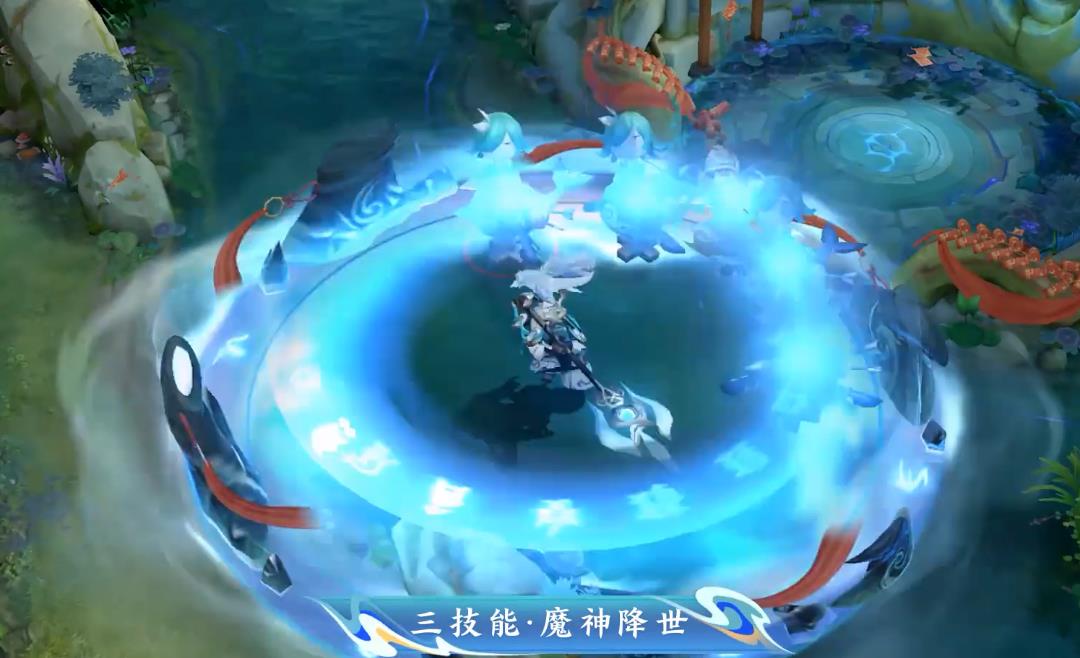 三技能寓意不错,神石上随风飘动的中国结,还有地面扩散开的流云,都昭示御风骁将破尘而来,扫除灾厄的象征,不过这都是客套话,攻击音效不利岁,而且一点也不霸气,原本吕布的英雄特色和定位就不适合这种,所以不论是特效做得再花哨好看也没用,主题和英雄压根就对不上。