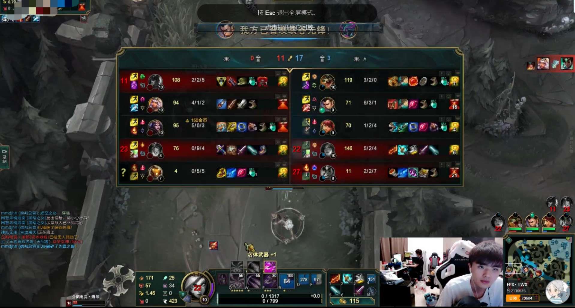 随后Lwx换线到上路,也是击杀了船长,推到二塔处时,遭遇了敌方轮子妈,虽然Lwx成功击杀了轮子妈和船长,可自己也被对方的中路妖姬和打野元素女皇拿下人头,打野Xinyi放峡谷先锋推掉对面中路一塔。