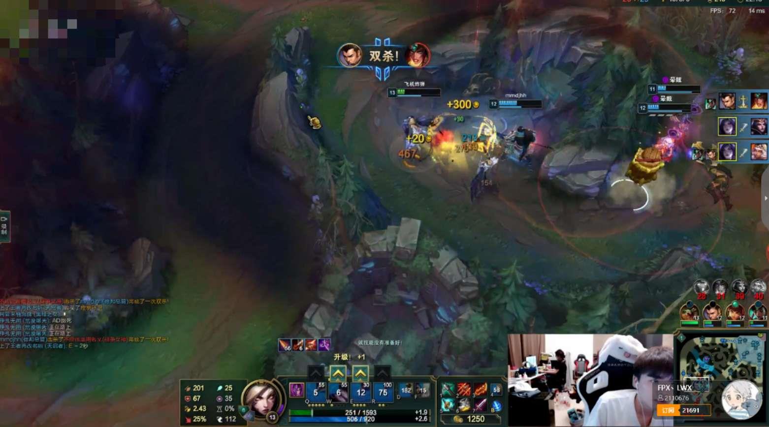 这局比赛,FPX队员Xinyi与Lwx进行了双排,在前期,Lwx在下路即打出优势,Xinyi见状拉上中单安妮一起,直接来下路帮忙越塔,击杀对面下路的双人组,帮忙拿下一血塔,继续扩大了Lwx的优势。
