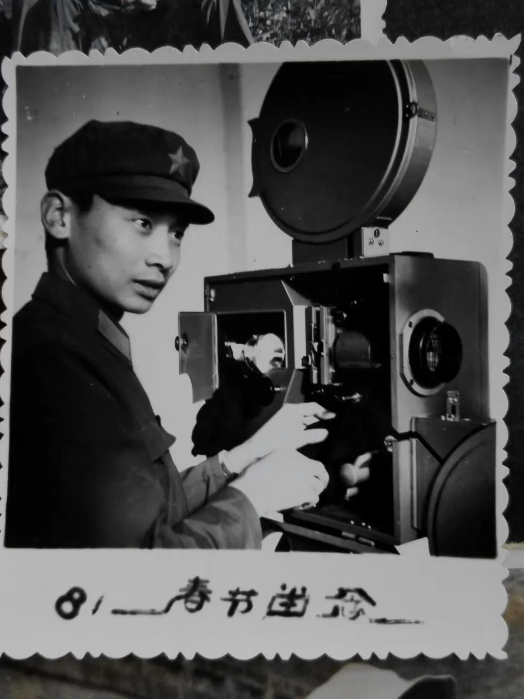 81年春节在解放103-A型放映机前留影纪念