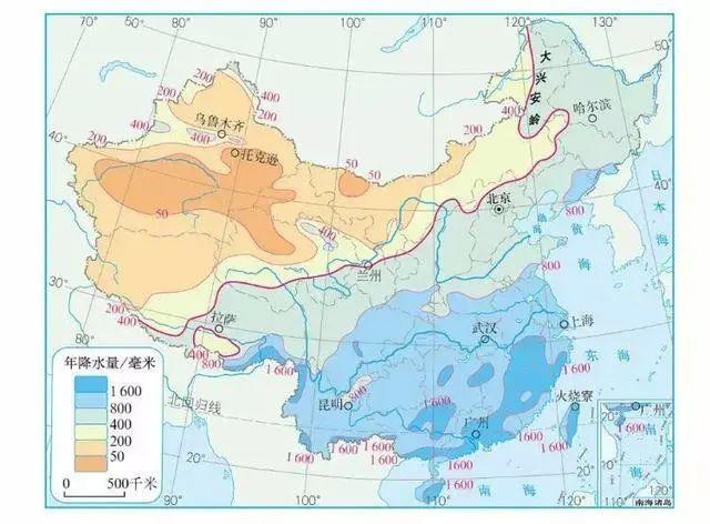 到了南侧,由于山岭阻挡了一部分水汽的北上