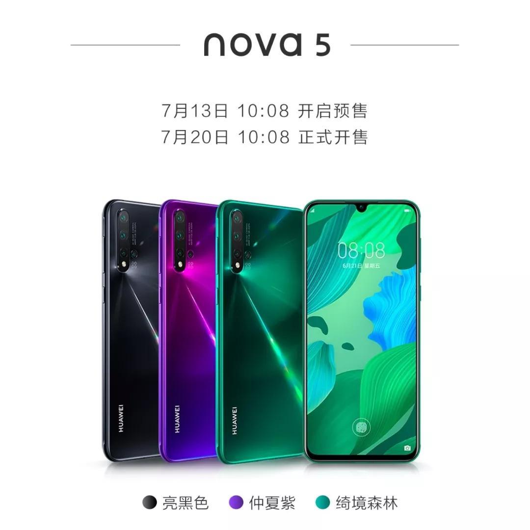 2019年6月21日,“华为 ”在武汉.光谷国际网球中心发布了年度新款HUAWEI nova5、HUAWEI nova5Pro、HUAWEI nova5i和HUAWEI nova5 PRO星耀版。