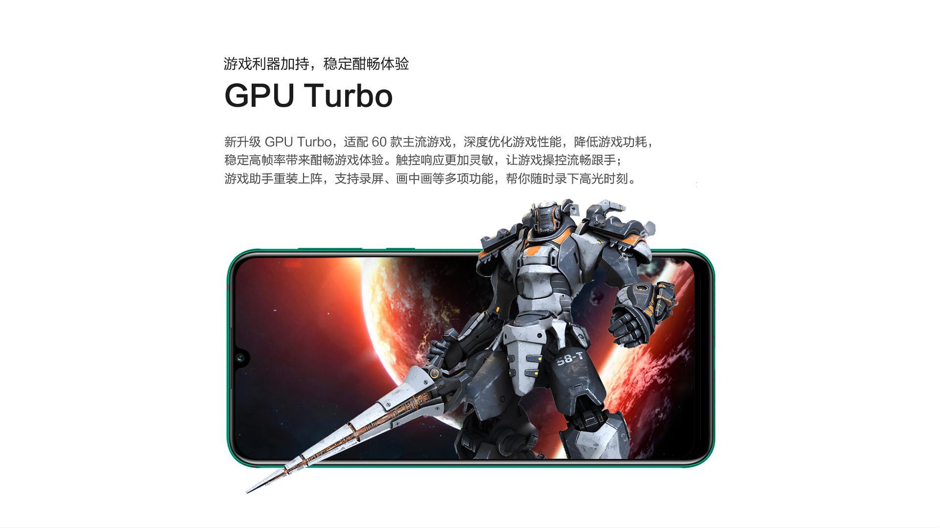 GPU Turbo技术*华为一直在升级,简单理解就是游戏显示效果,手游的画面会越来越好,技术,使手机显示效果加强,分担了CPU的运算量,能耗降低,运行速度也有响应提升