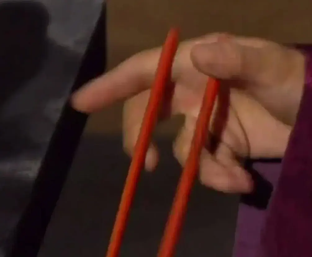 通常持握筷子有2种方法,手都是放在偏后部位,指尖接触位置均为筷子中间部位。