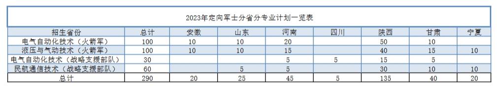 西安航空学院有专科、本科专业,为解放军定向培养士官。2023年招生计划: