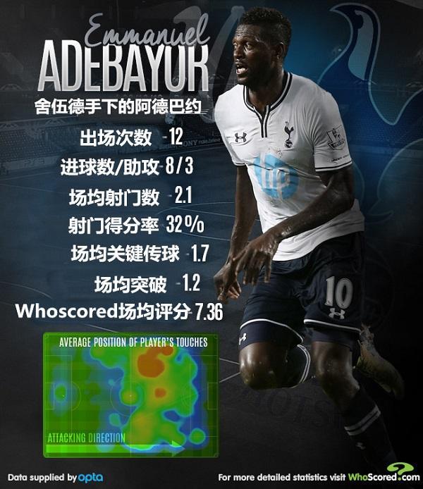 从老雷的力排众议将其租借至队,到博阿斯、舍伍德、波切蒂诺麾下的起起落落,阿德巴约在热刺的四年光景,如同昔日皇帝般的宠臣爱妃一般,投缘就士为知己者死,不投缘就预备队的比赛你也甭想踢。