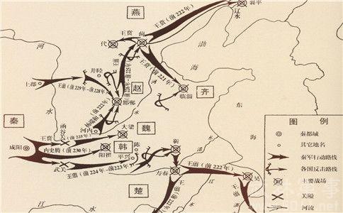 前236年至前221年,嬴政采纳尉缭破六国合纵的策略,确定了先弱后强,先近后远的具体战略步骤——笼络燕齐,稳住楚魏,消灭韩赵,然后先后灭掉六国,统一全国。