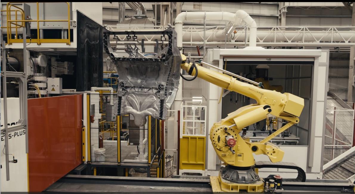 2021年,上海超级工厂在扩建时引入了4台来自力劲集团的6000吨压铸机。在特斯拉官方公开的视频信息中可以看到,每台压铸机像是一间红色的房子,机械臂将冒着白气的后底板铸件从模具中取出,冷却定型,在一台压铸机周边,摆放着数十个带着指示灯的控制器,整个车间几乎没有人工参与。