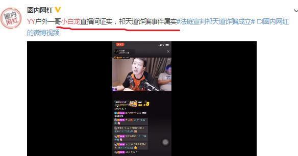 且据悉在7月1日,祁天道宣布因身体原因无限期退网。但数天后,网上流出一段此前快手祁天道涉嫌诈骗,被法院宣判的视频。