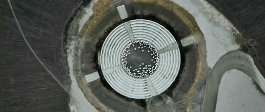 《干涸之地》(2015/2017)直面人类对世界产生的影响。在科幻电影的传统中,这件作品追溯想象中的未来后人类世:人类对地球产生重大影响的后果。一队科学家似乎在人类灭亡后的文明遗迹中进行考古研究。作品全程使用无人机拍摄,罗斯菲德的镜头在荒凉的景观和废墟上若有所思地徘徊着。