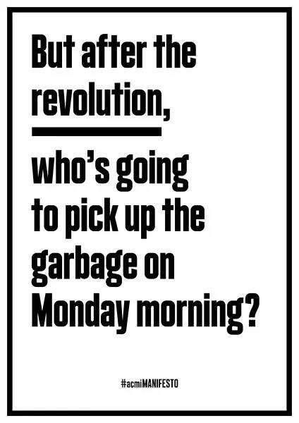 作品在向宣言的动人传统致敬的同时,对宣言本身能否经受时间的考验,以及艺术家在当代社会中的身份提出了质疑。