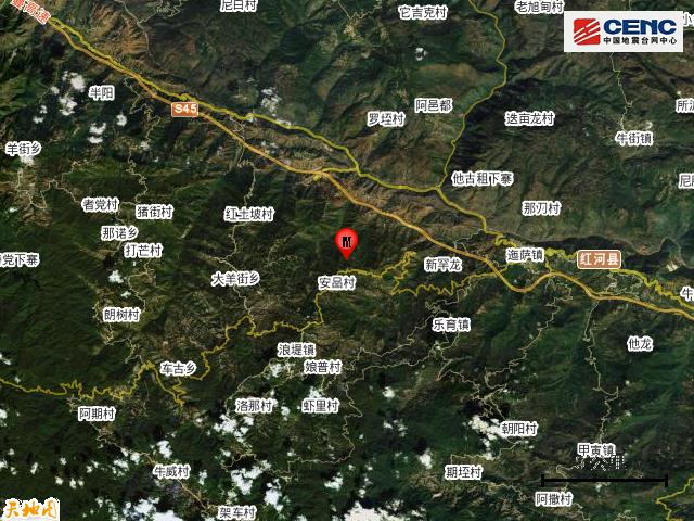 云南红河州红河县发生5.0级地震