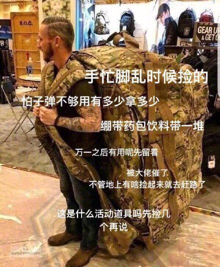 手忙脚乱时候捡的,怕子弹不够用有多少拿多少,绷带药包饮料带一堆,万一之后有用呢先留着,被大佬催了不管地上有啥捡起来就去赶路了。
