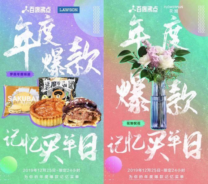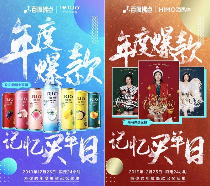 再比如RIO锐澳鸡尾酒、FLOWERPLUS花加、海马体照相馆、上海罗森与百度沸点联合推出的年度爆款记忆买单日,与百度沸点榜单巧妙呼应,展示了他们2019年的爆款单品,灵活地将品牌信息传递给了消费者。