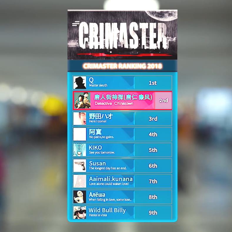 林默要坤泰等他一分钟,直到他激动地发出一声欢呼,我们看到了他游戏的界面:crimaster(犯罪大师)排行榜。