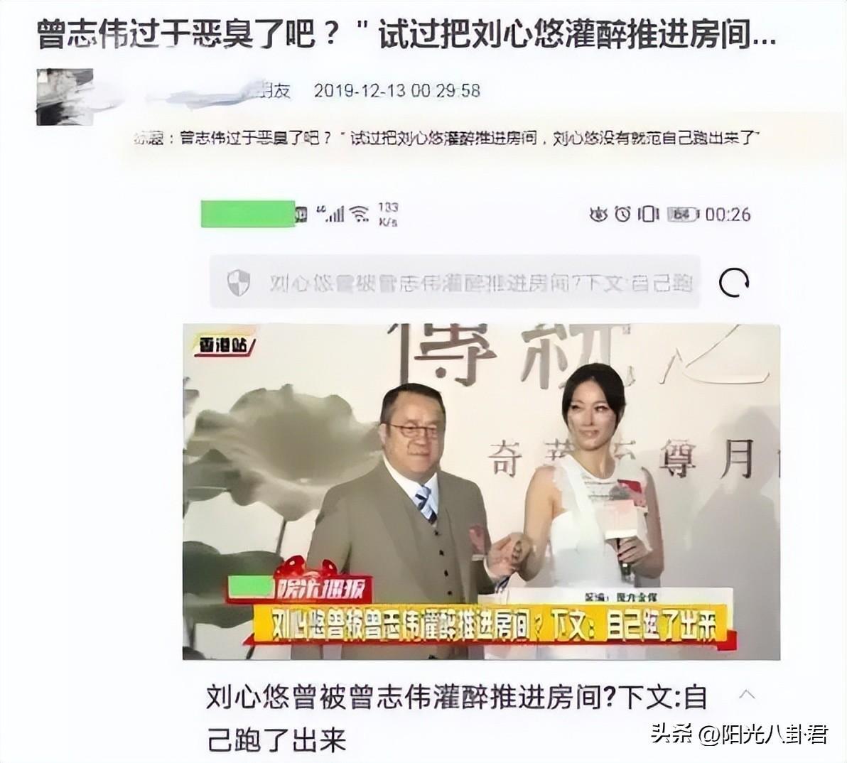 2017年,刘心悠与曾志伟出席一场广告活动时,曾志伟在现场爆料在刘心悠刚出道时,自己曾有过将她灌醉推进房间的举动。