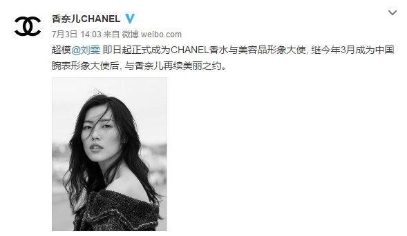 今年7月刘雯拿下了六大蓝血之一香奈儿的代言,成为香奈儿香水与美容品的全球形象大使。意味着刘雯在代言和时尚的前进路上又有了质的飞跃。
