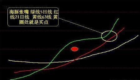 当5日线、21日线、63日线呈多头排列,股价上涨一段时间以后开始回落, 5日线也开始向下当5日线接近21日线时,股价被21日线托起,5日线开始反身向上,这就形成了标准的海豚张嘴。