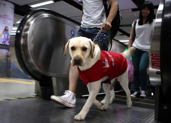 导盲犬是一只受过严格训练的工作犬,它们是盲人的眼睛,如果你遇到了导盲犬请你不要干扰它。