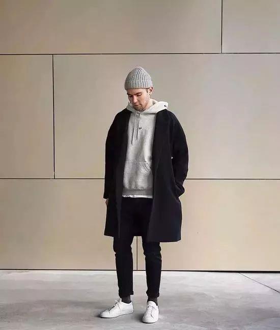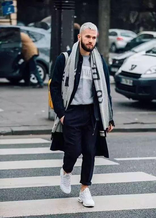 如果想运用色系来增添成熟型男的氛围时,不妨以灰加黑来呈现都会感的街头个性,以本季必备的大衣外套,混搭出帅气爆棚的风格,或者将黑色转换到整体搭配,一条灰色围巾就能展现完美大方的高级气息。