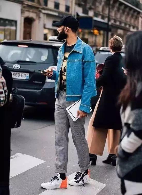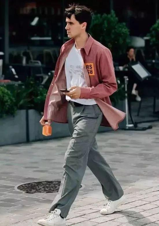 选搭亮色衬衫加上灰色裤款,平衡出和谐的造型美感。