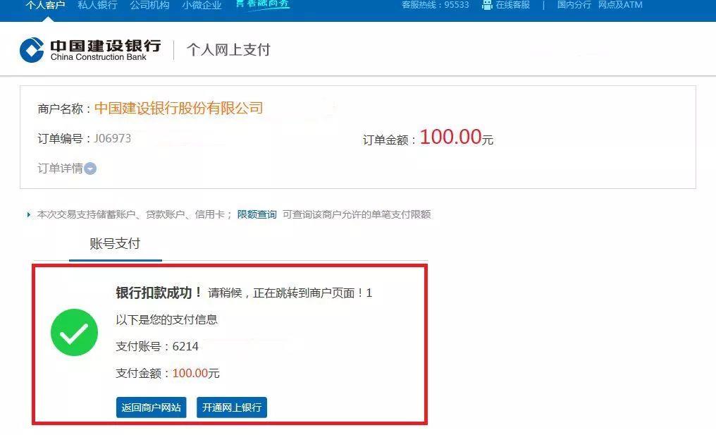 1.选择“建设银行支付平台”,点击“确认支付”跳转到支付下一步。