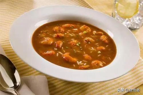 秋葵浓汤,是一道源于美国路易斯安那州南部的菜式。美国路易斯安那州是一个热爱小龙虾的地方,秋葵浓汤是把秋葵、海鲜、肉类、以及风干的蔬菜熬成的一锅黏糊糊的浓汤,秋葵的作用是这锅汤的增稠剂。