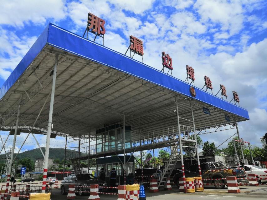 在高速上行驶了120多公里,由于有一小段高速公路在搞扩路工程,行驶还是很缓慢的,还好都没有遇到堵车。大概一个半小时,我们就到了中越两国的交界处,因为是边境城市,交界处设立了边检站。