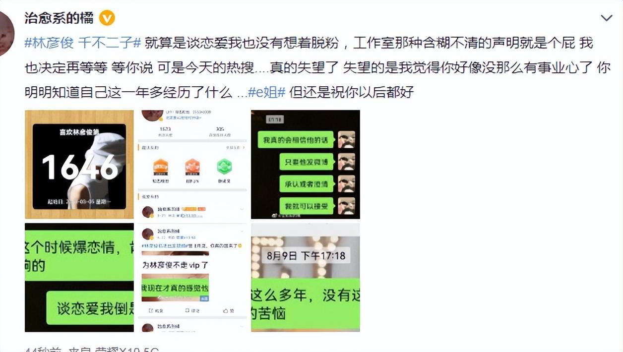 林彦俊恋情风波引发脱饭,女方大量性感照曝光,被扒后清空账号