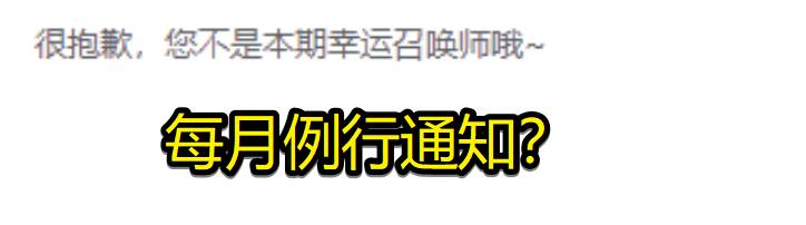 但官方的“惯例”大家都清楚了,幸运召唤师基本和老玩家们没有关系,除了极少个别人以外,进入界面都只能收到“很抱歉”的消息。反而是新玩家一抽一个准,很多人都表示自己的大号几年没中过,但小号抽到的几率却非常高。