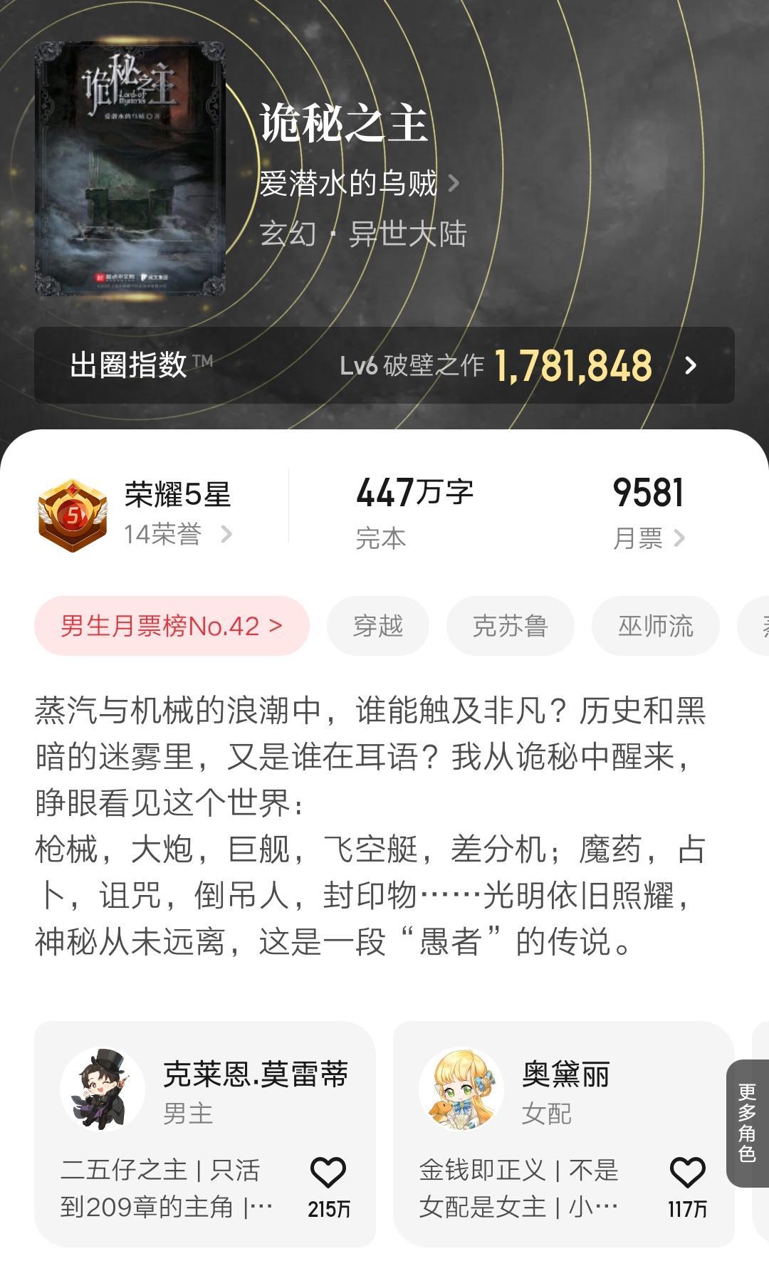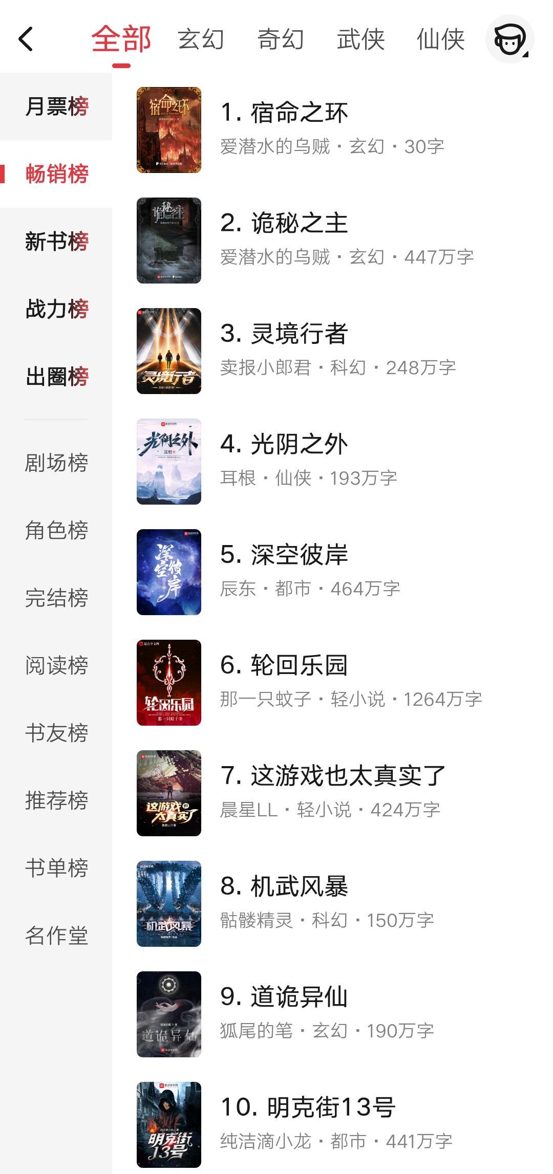 如今新书启航,还是希望《宿命之环》能赶超《诡秘之主》创造新的高峰的。
