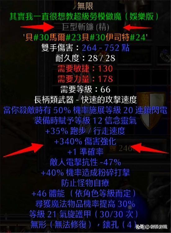 无限——暗黑2中使用率最高的武器之一(或许没有之一),虽然算不上玩家们的神器,但绝对是米山的挚爱武器。原版中也常常被电法所使用,而2.4补丁后,电矛马的出现,更加提升了无限的地位。