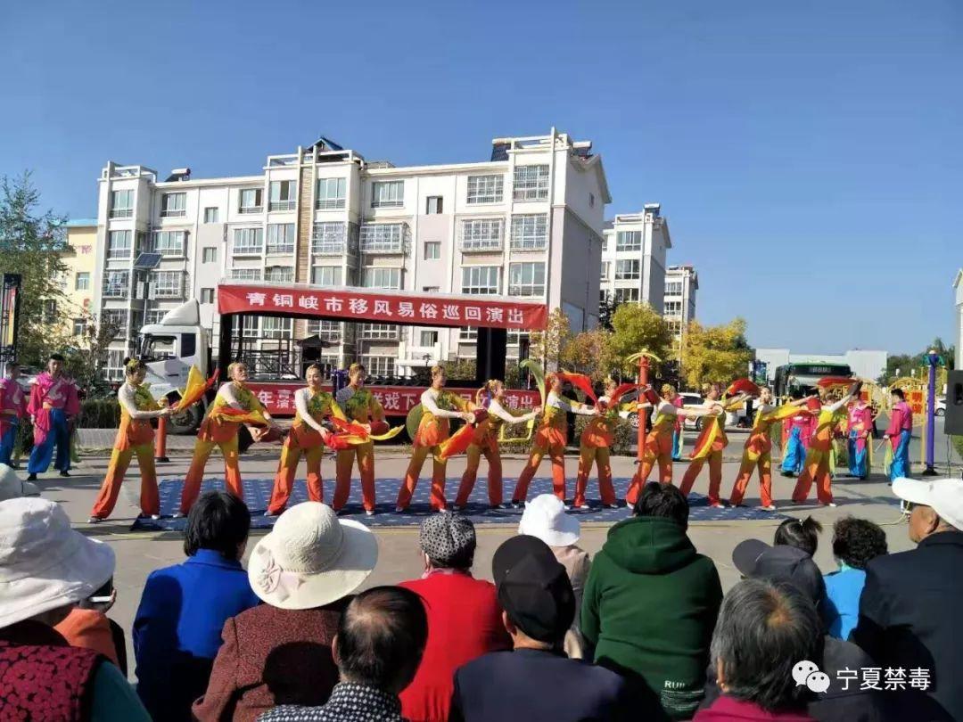 10月22日下午,青铜峡市陈袁滩镇禁毒办巧借市委宣传部在辖区韵欣苑开展“移风易俗”文艺汇演之际,进行禁毒宣传。