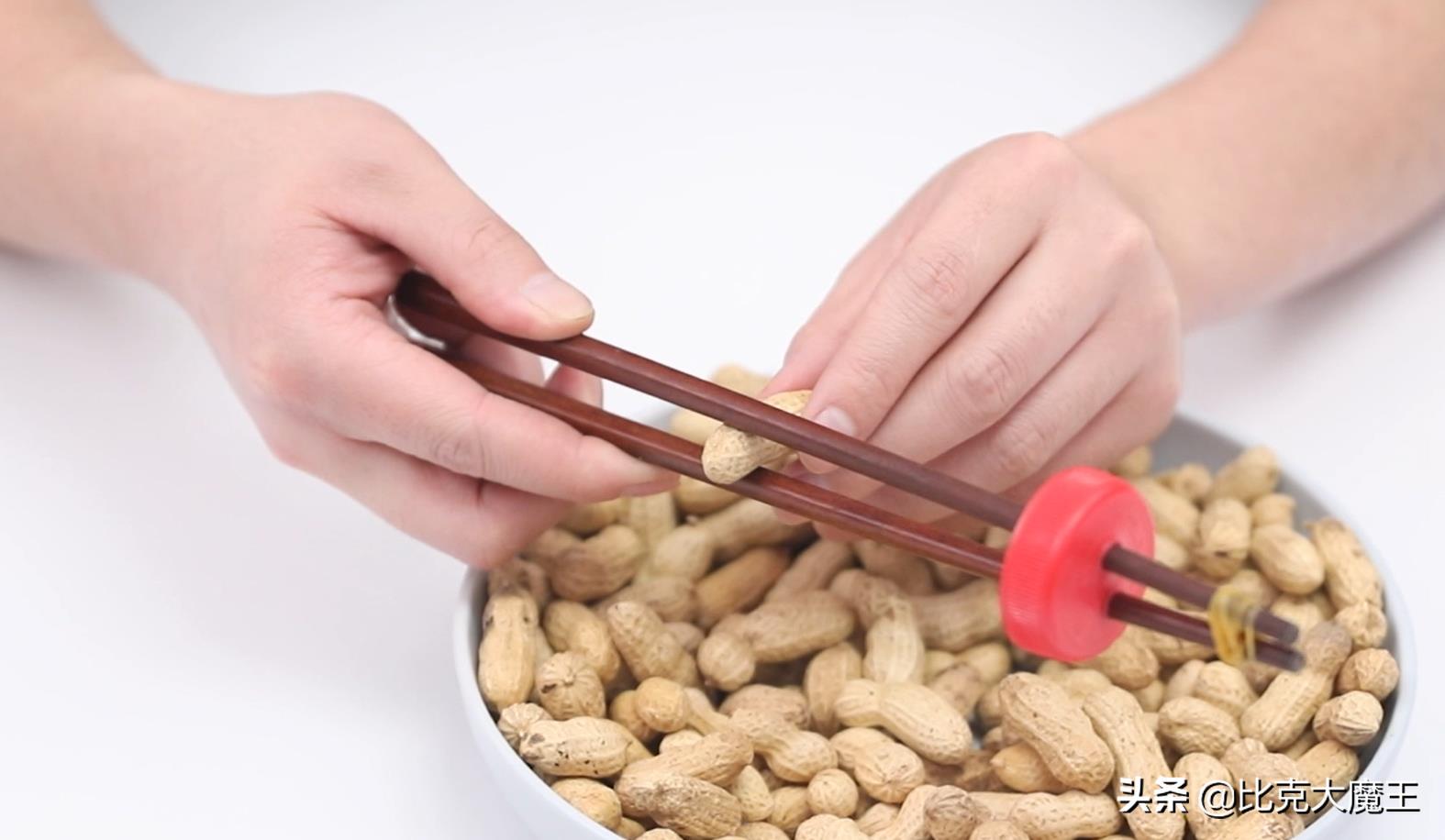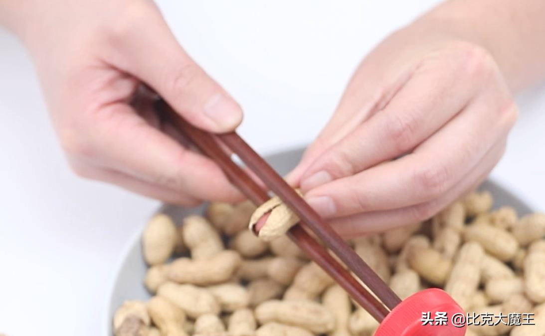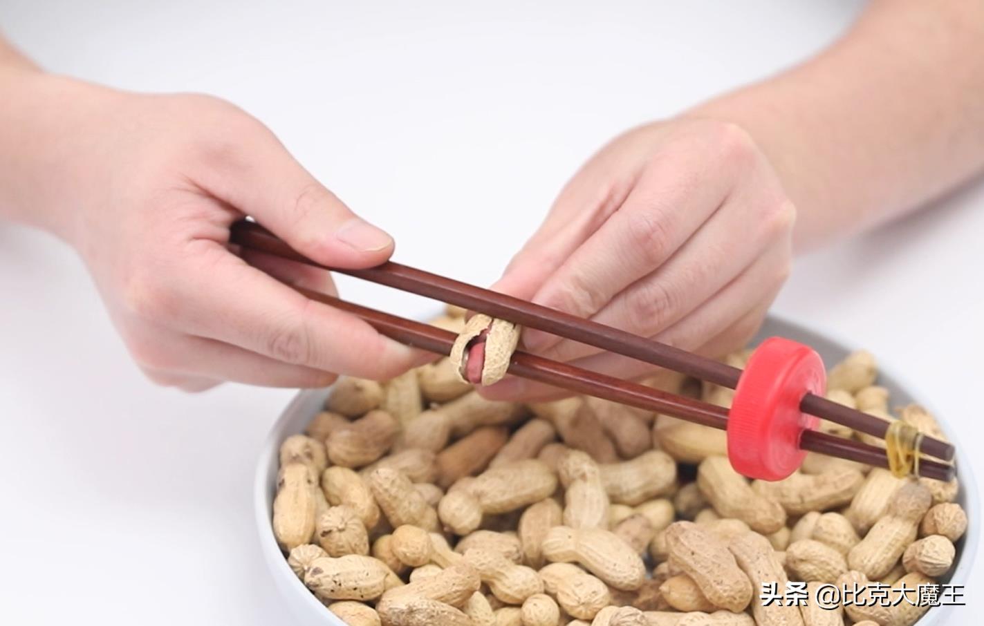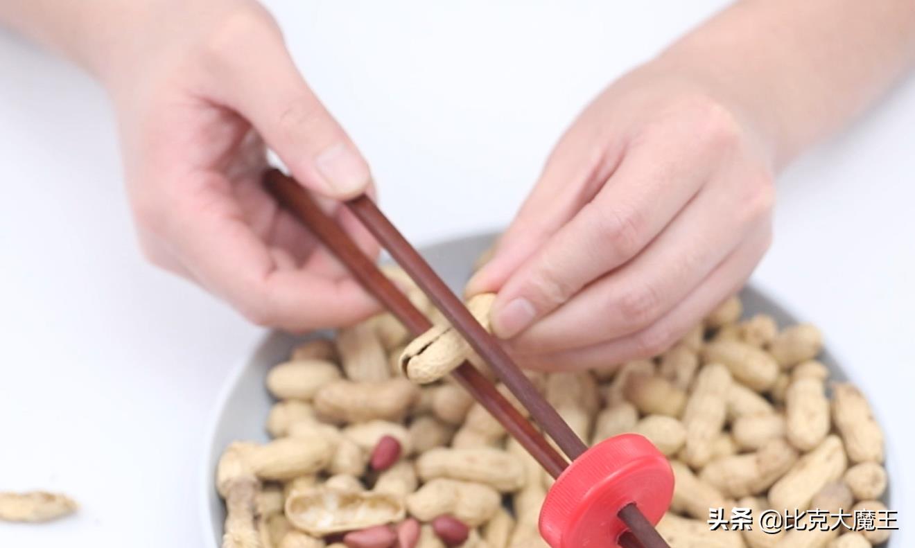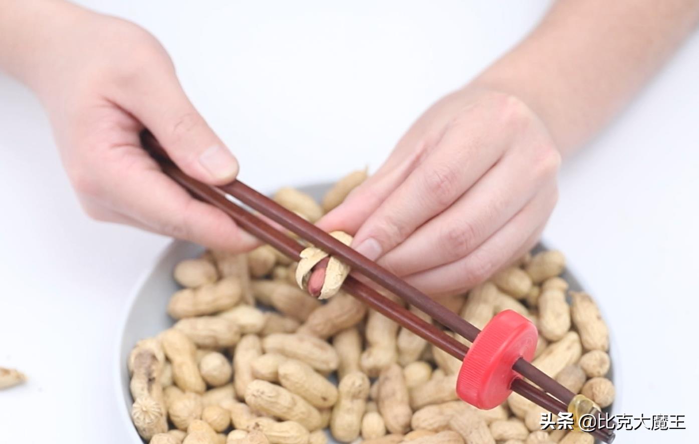 剥花生别用手抠,只需2根筷子1个瓶盖,快速剥花生,好用不伤手