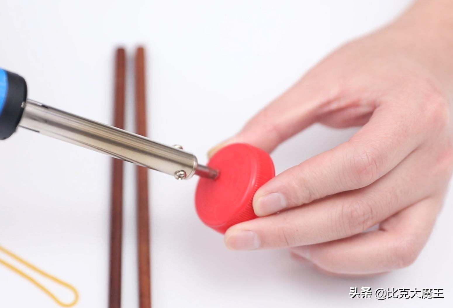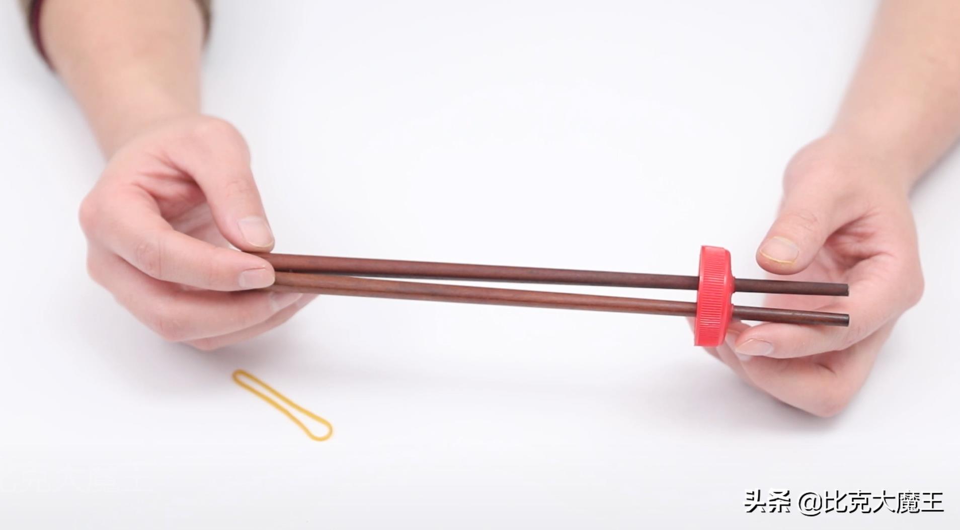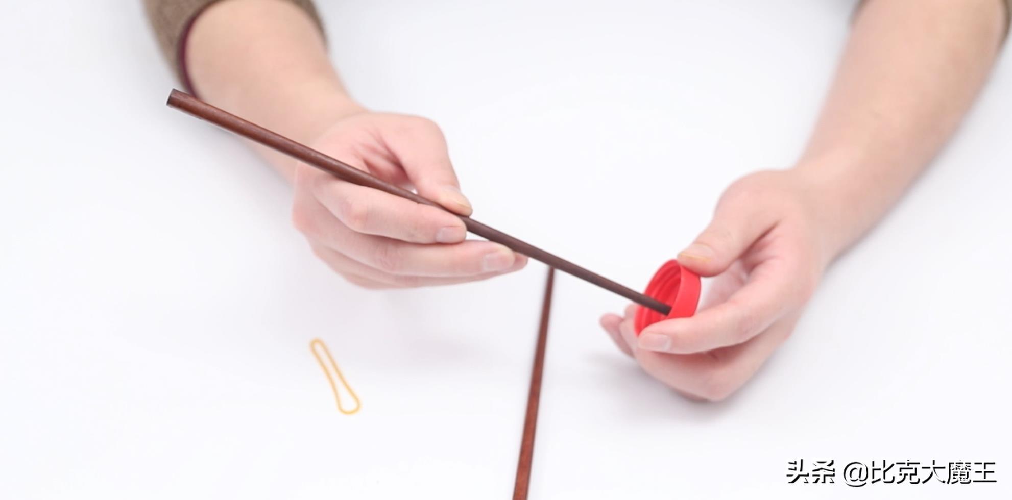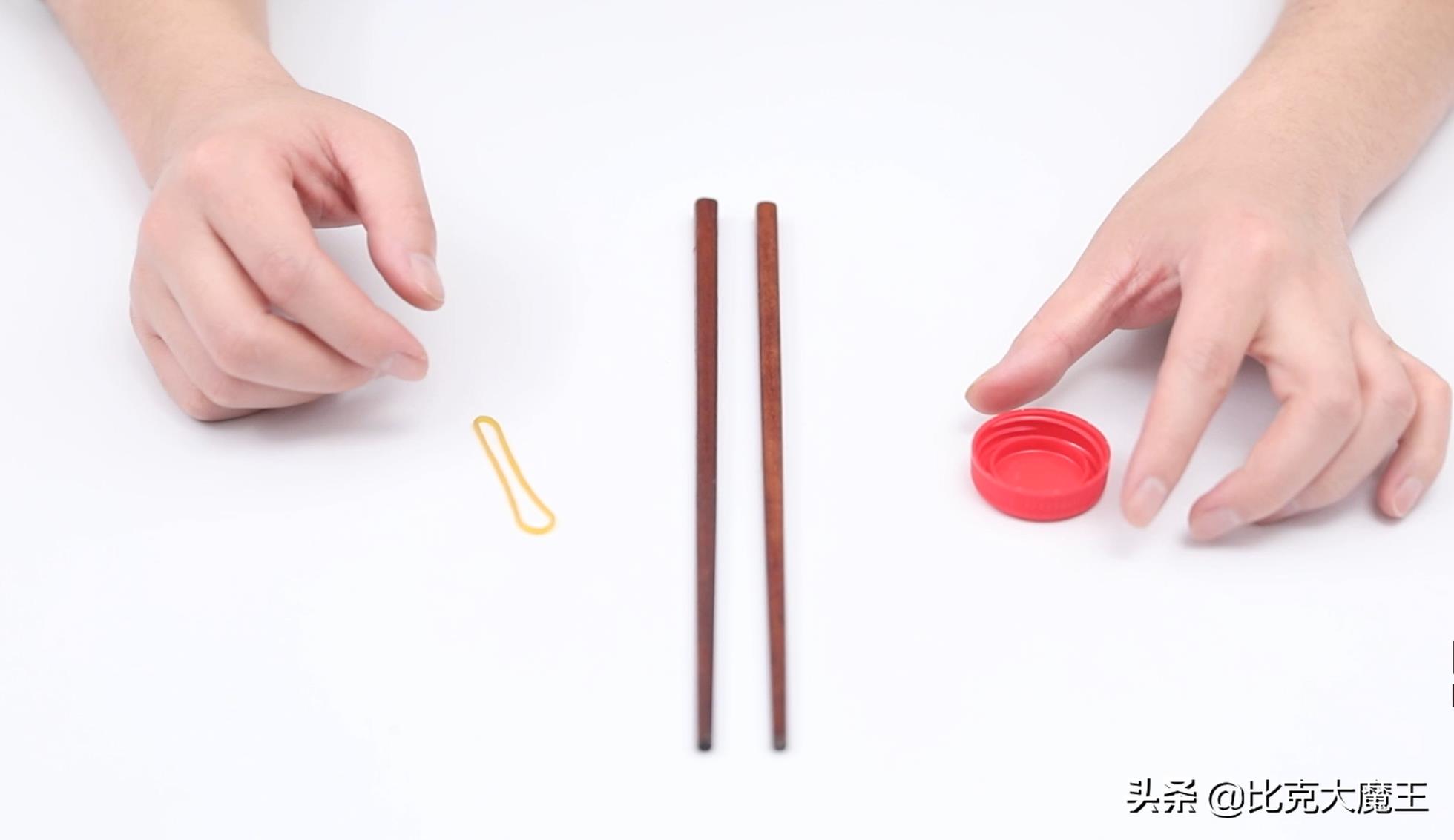 制作方法很简单,一双筷子一个塑料瓶盖,一根橡皮筋就可以
