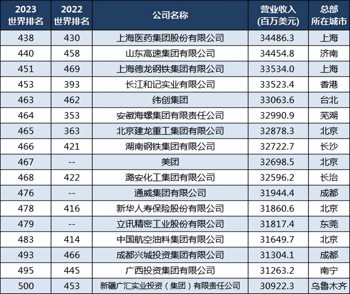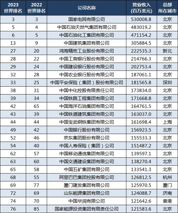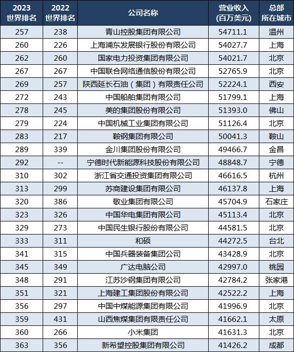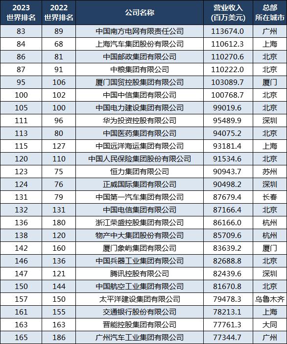 最新142家中国世界500强企业:38家排名上升,93家排名下滑