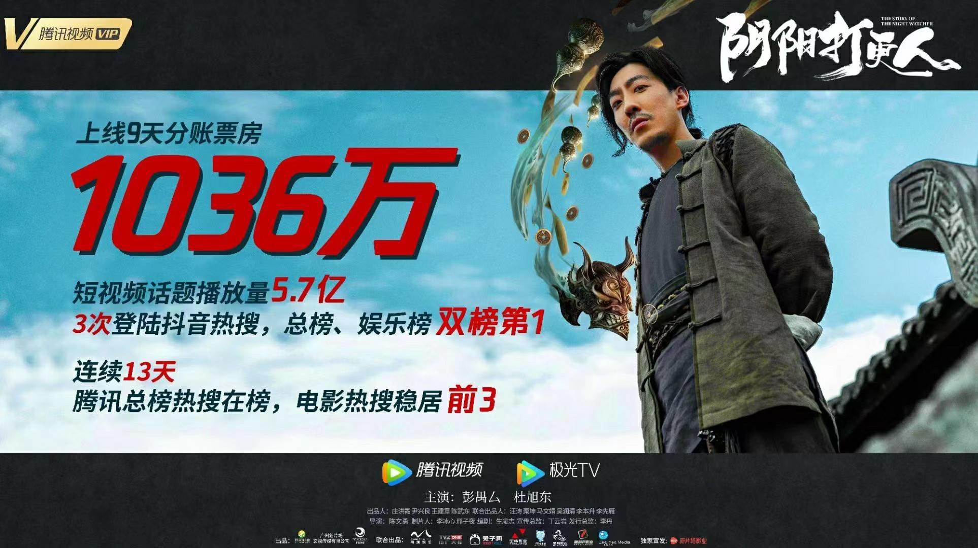 如果说,过去林正英是灵幻类电影的不二人选,那么今日,我们可以像相信林正英一样,永远相信彭禺厶的诚意。《阴阳打更人》上线首日便拿下了网大热度榜第一的位置,上线3日,分账票房达到了509万,上线37小时,站内专辑播放量破2000万!短视频话题播放量高达5.7亿,并3次登陆抖音,总榜、娱乐榜双榜第一名,连续13天腾讯总榜热搜在榜,电影热搜稳居第3,目前该片累计票房 1514万,在热度与口碑方面均一马当先!