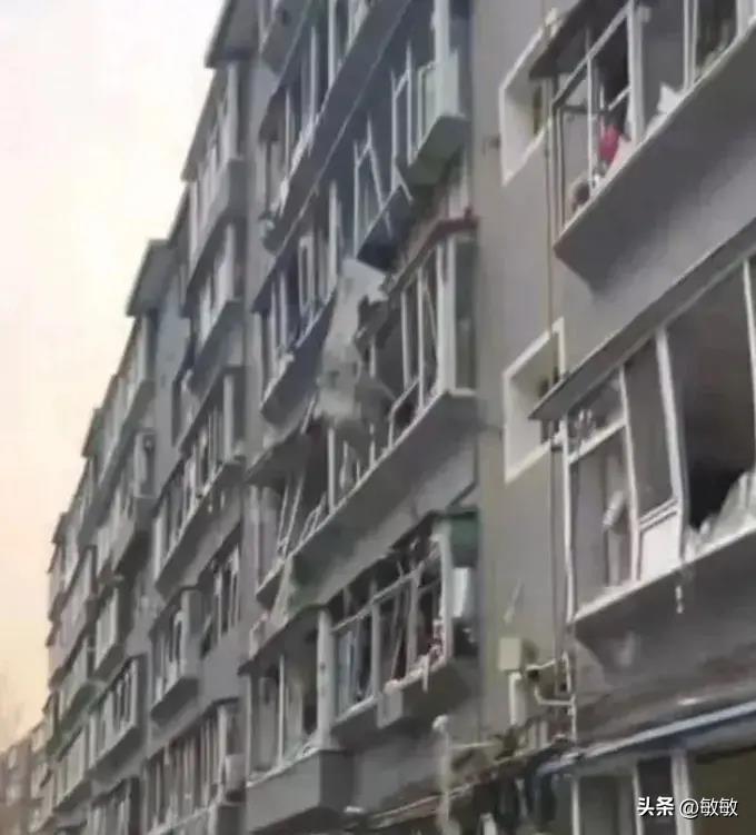 碎片随着冲击波飞出墙外,蔓延到对面的居民楼。对面部分楼层的窗户玻璃破碎。场面十分惨烈。