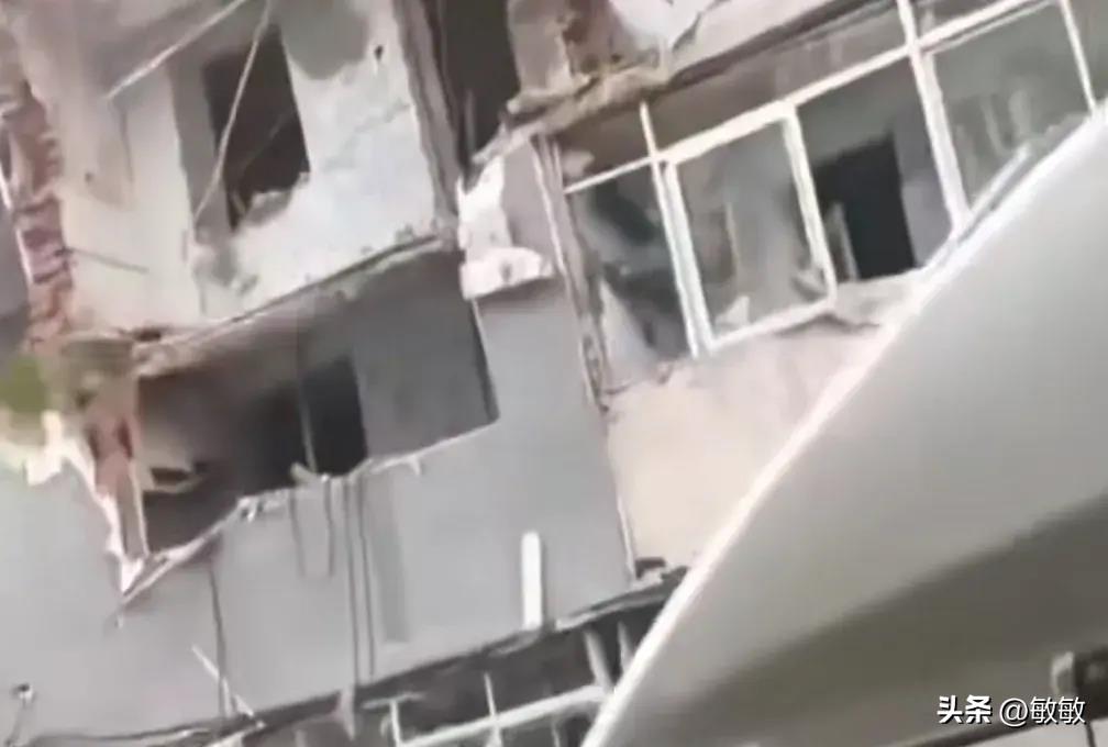 根据现场拍摄的视频,发生爆炸的大楼墙壁被炸出一个大洞。大楼破损的地板掉到了洞下面。居民家中的窗户被炸飞挂在墙上,家里的物品也被炸飞。