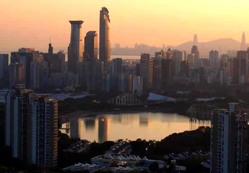 换个角度看香蜜湖,它的确就有豪宅区的气质了,下面这两张图片是我在一栋楼顶拍摄的,最高摩天楼所在地是深圳CBD,近处中间那一个小湖泊就是大名鼎鼎的香蜜湖,湖泊周围的商住楼就是豪宅区。