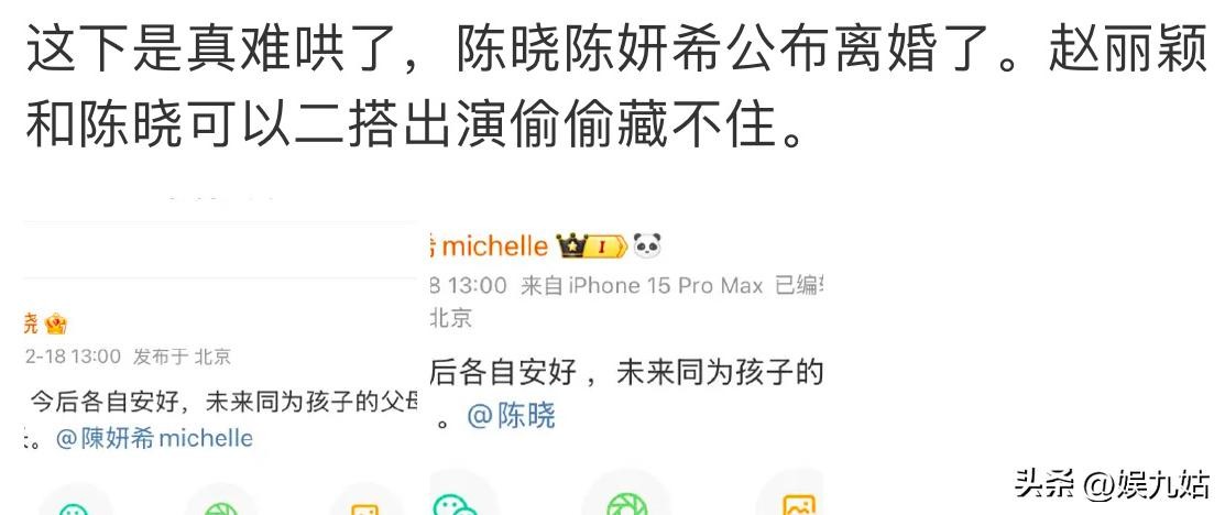 陈晓与陈妍希刚官宣离婚不到2天,"陈晓赵丽颖接 二搭"的通稿就铺满全网。