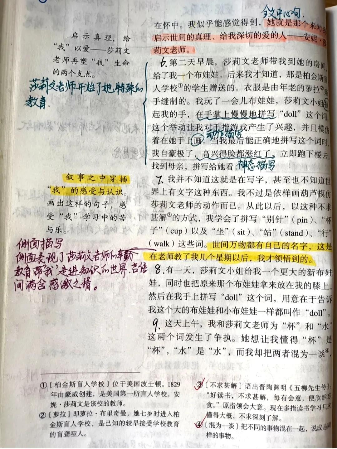 七年级语文上册第十课《再塑生命的人》课文笔记,预习的好帮手