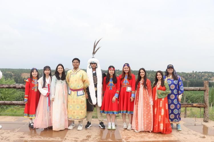 参访团成员们换上民族服饰在统万城国家考古遗址公园里留影 摄影 张雨晨