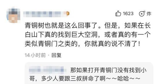 据了解,女子因迷恋《盗墓笔记》电视剧,时常到网上“神游”。直至“青铜神树”的出现,不少网友调侃,“两大神器一个已证实,另一个‘青铜门’也应该在长白山......”