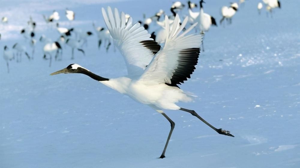 丹顶鹤在中国传统文化中地位崇高,被称为"仙鹤",寓意美好,象征着长寿与吉祥。