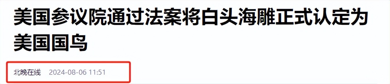 1.北晚在线2024年8月6日:美国参议院通过法案将白头海雕正式认定为美国国鸟